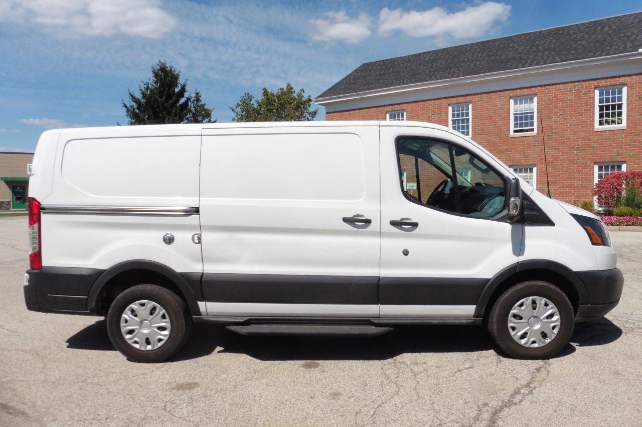 2019 Ford Transit T-250 Low roof 130" Wheelbase Cargo XLT With Bulkhead, Shelves, and Racks! Tow package with trailer brake (factory). Sliding side passenger door,, 3.5L V6, cruise control, power windows, power locks, power mirrors, back up camera, A/C, running board, keyless entry, vinyl floors, and much more!